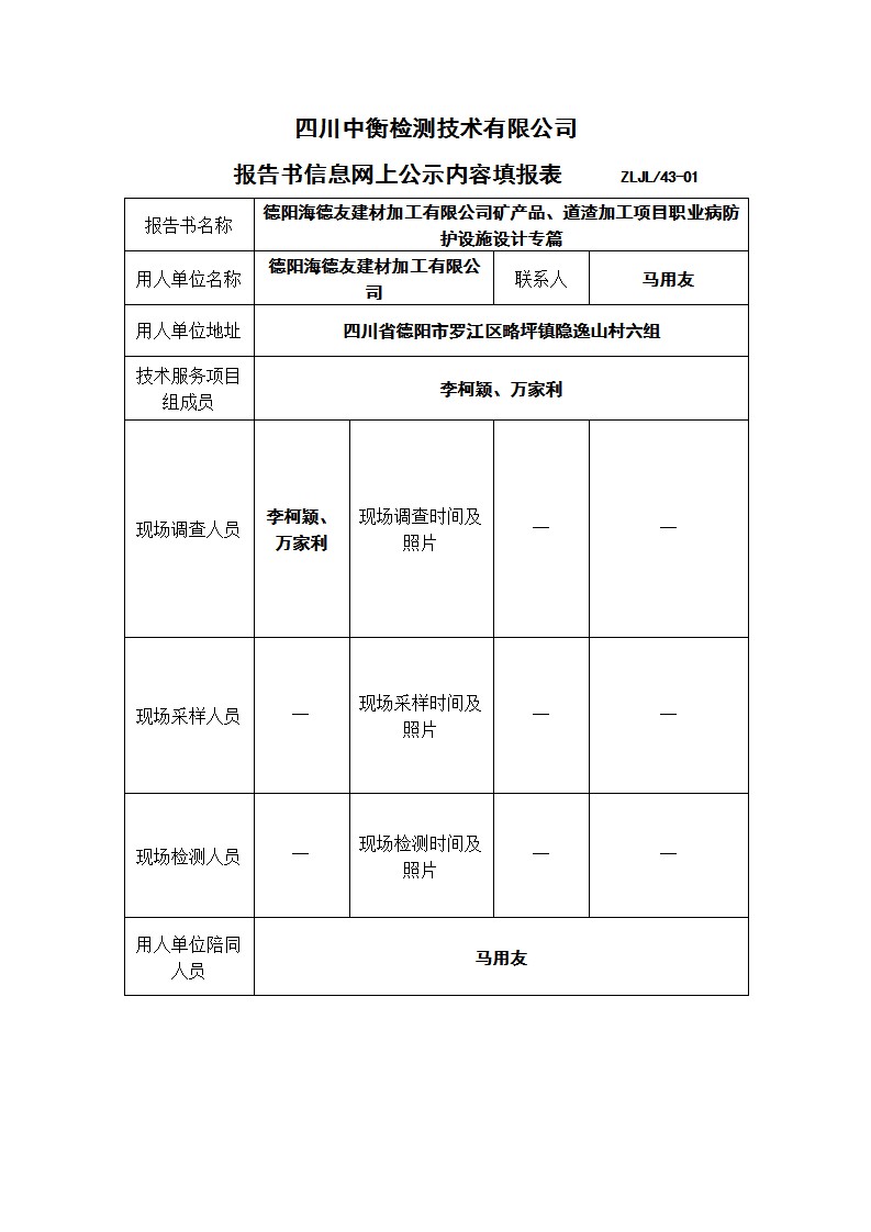 德陽海德友建材加工有限公司礦產(chǎn)品、道渣加工項目職業(yè)病防護設(shè)施設(shè)計專篇